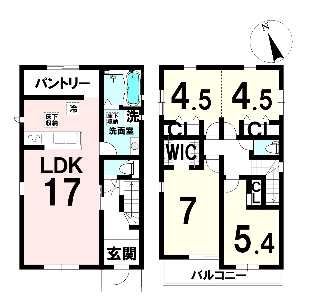 新築3LDK。駐車場2台付き。収納たっぷり。